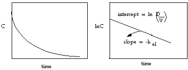 Figure 3.5.2. Graphical treatment of plasma concentration with time to obtain kel and VD