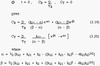 Comparing these equations with those for the one compartment model, we